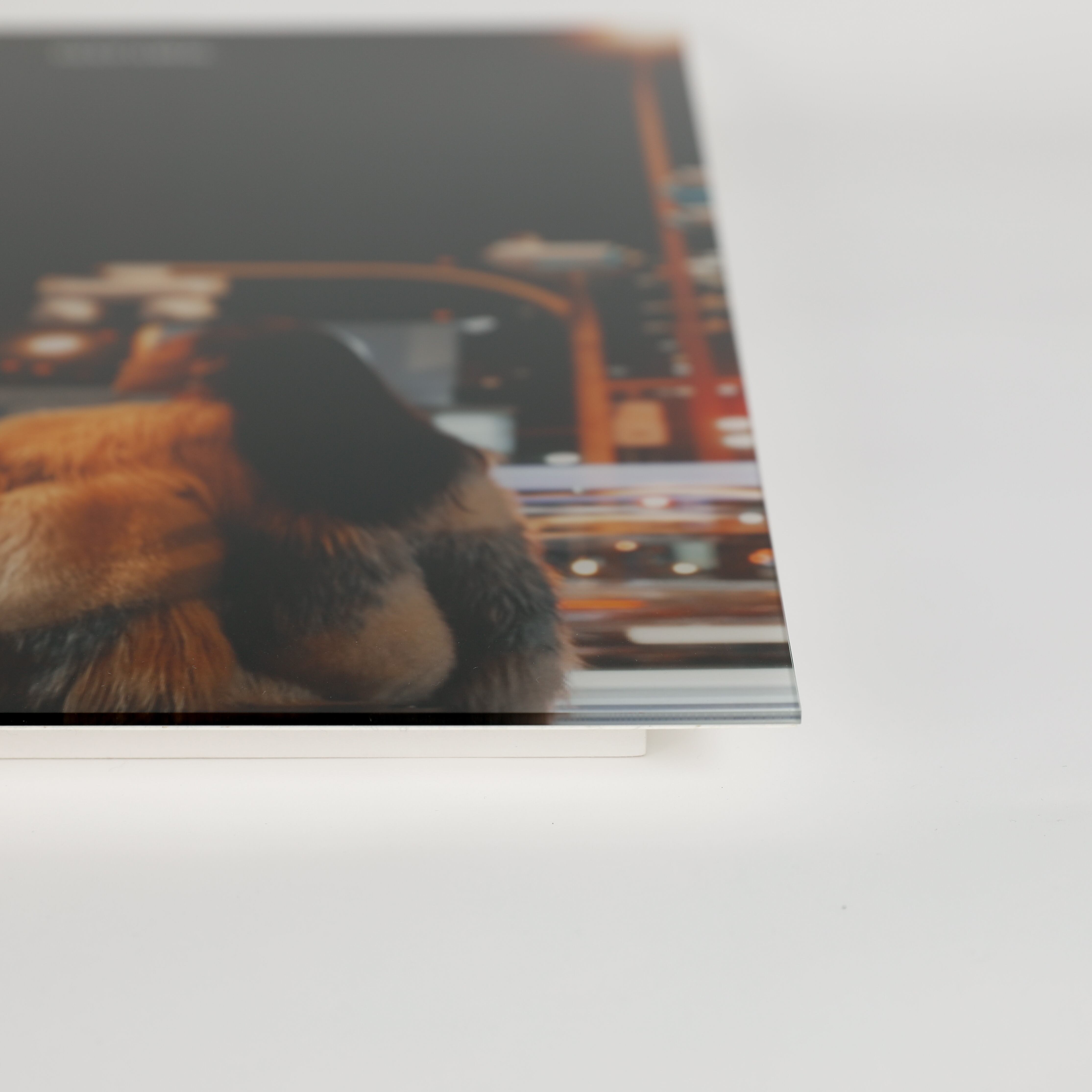 ※フォトアクリル加工とは、プリント面にアクリルを圧着する加工方法です。アクリルを透過してみることにより写真に透明感が生まれ、奥行き感も強調されて浮かび上がる様なイメージになります。またアクリルがプリントを保護し、平面性を保つ効果もあるので、高級感も出て長期間にわたり部屋などへ飾ることが可能です。